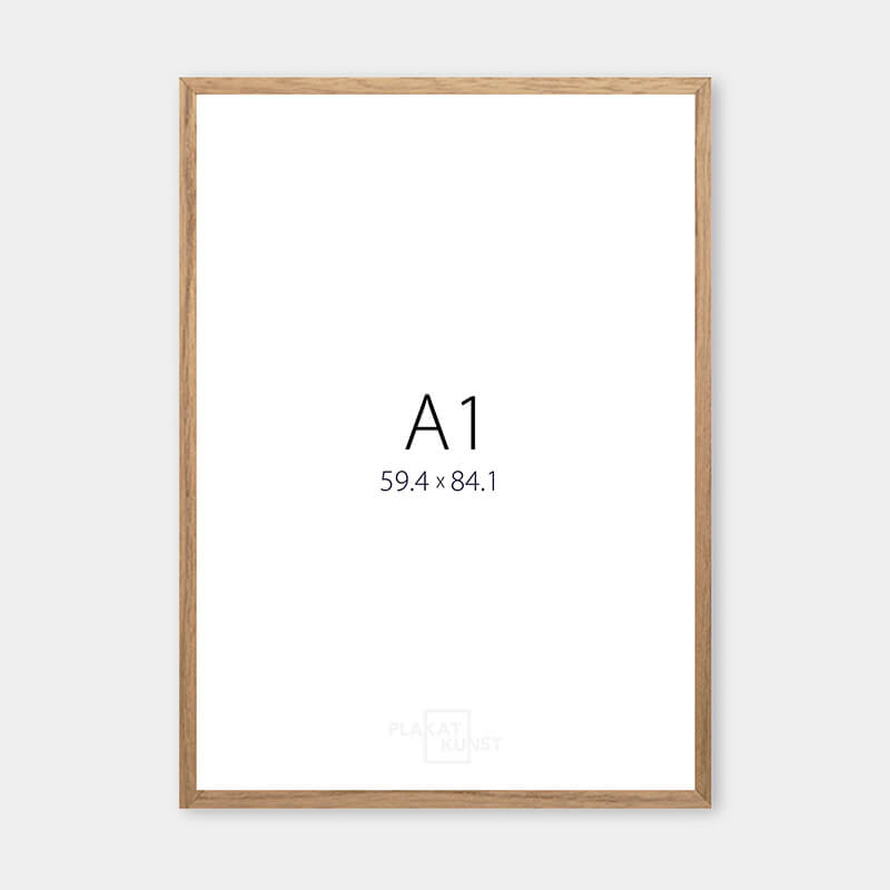Køber du en plakat med en A1 ramme, vil plakaten være indrammet, glasset pudset og billedrammen klar til at hænge op på væggen.