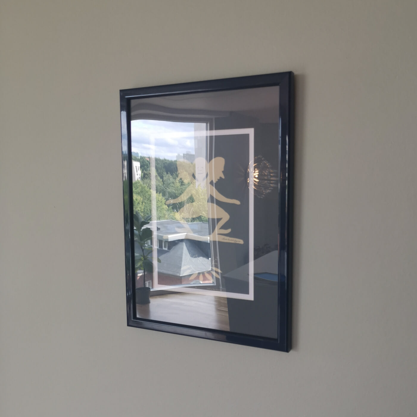 Som du kan se på billederne, har normalt glas (og akryl) meget genskin. Især om dagen, og hvis den spejler en kraftig lyskilde. Ønsker du ikke alle de refleksioner, skal du vælge refleksfrit glas (mere mat end de øvrige) eller museumsglas.