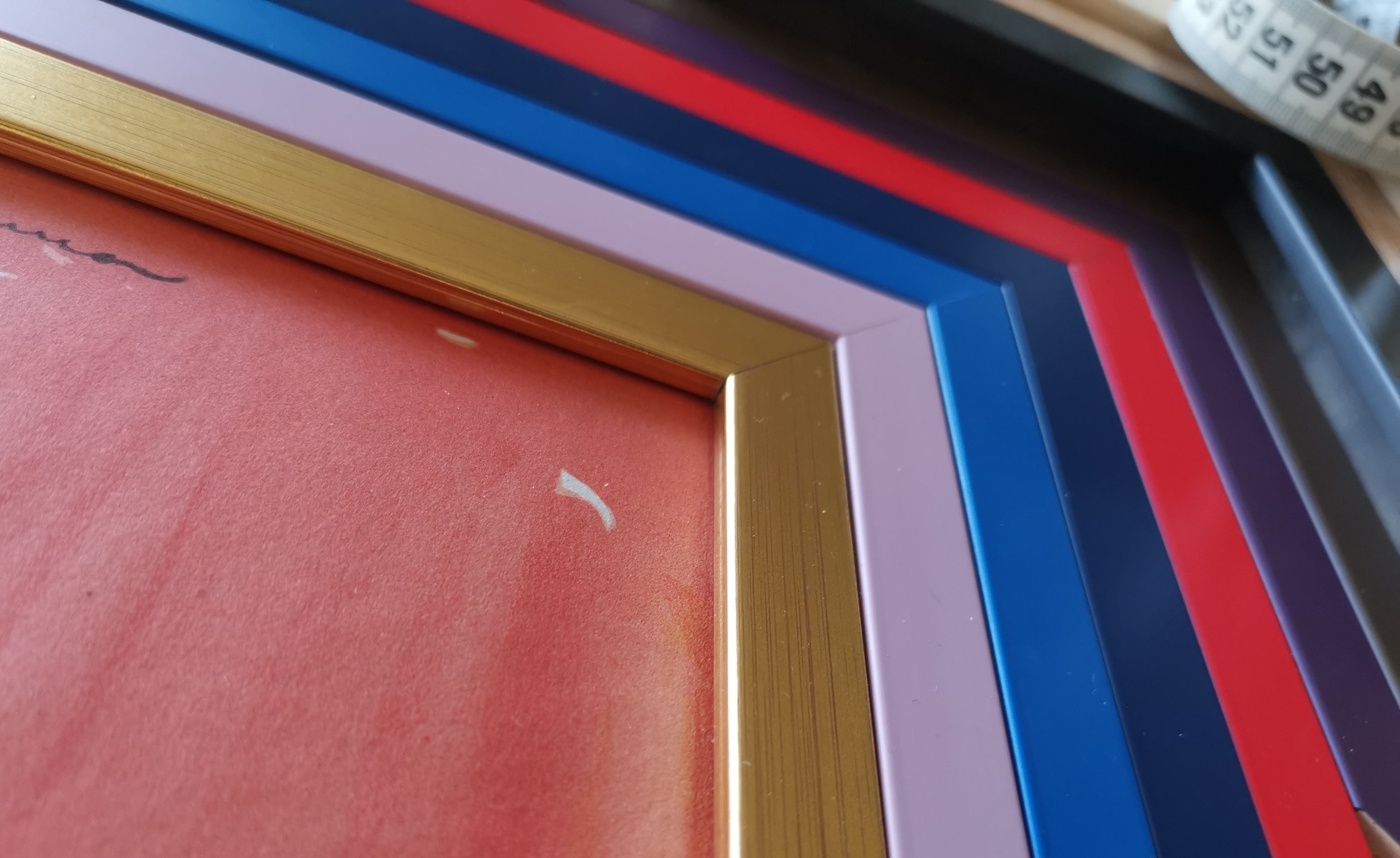 Farvede rammer er virkelig populært for tiden, og med god grund. De kan komplimentere billedernes farver virkelig flot, og giver kreative muligheder med passepartout eller indlægspapir.