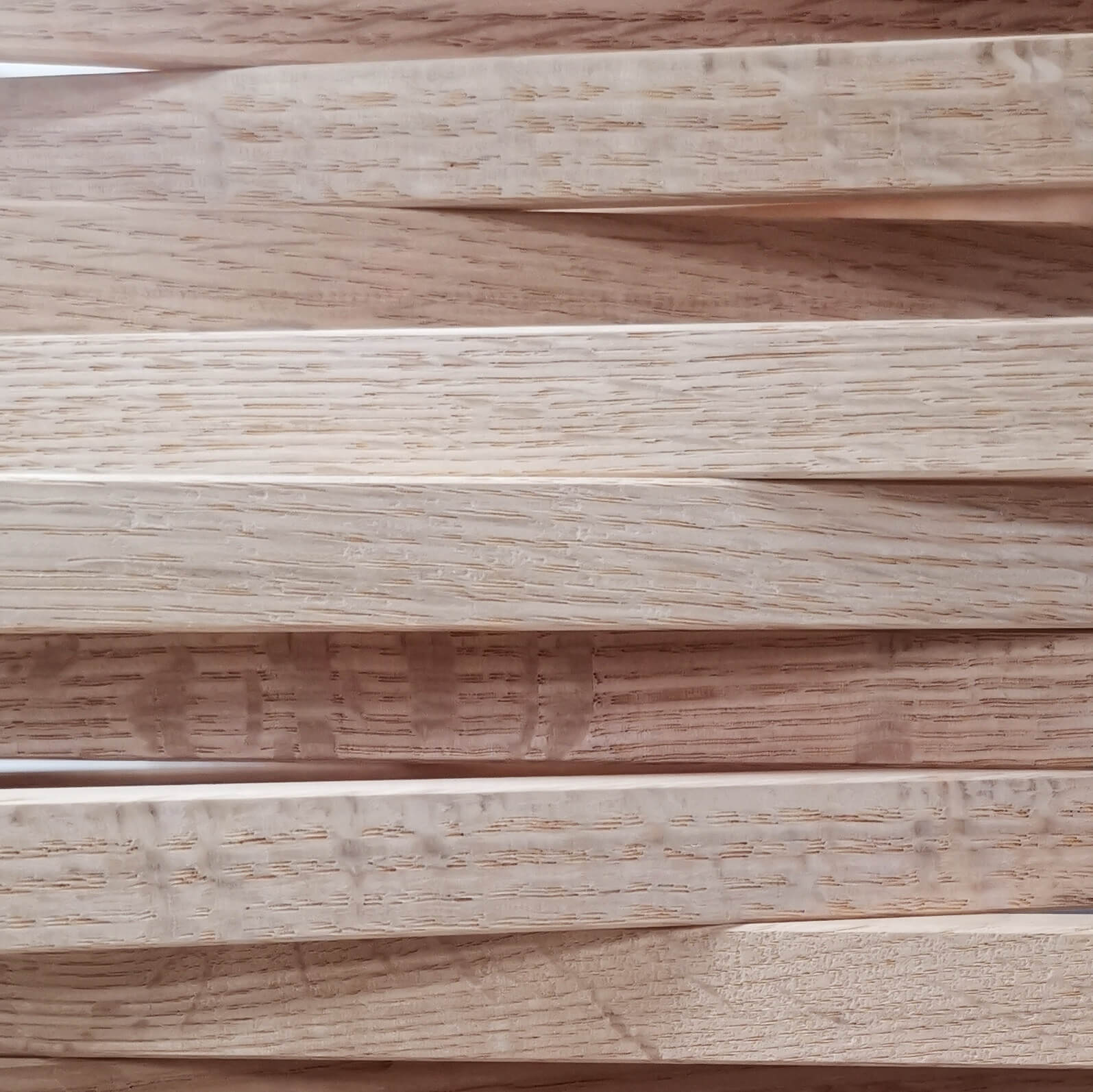 Vores egetræsrammer er lavet af 100% massiv egetræ fra Canadiske skove, produceret på bestilling i Danmark. Som du kan se på billedet, er der stor variation i egetræets struktur, hvilket både gør det smukt og uforudsigeligt. Egetræet er ikke selektivt i forhold til hvad det suger op af jorden, og modtagelig overfor naturens elementer generelt, så der er mange faktorer, som har en hånd med i træets struktur.