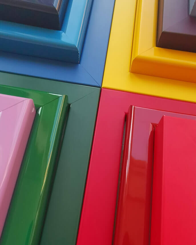 Alle vores farvede rammer - også de hvide og sorte - har en helt glat overflade, så man ikke kan se træets struktur.