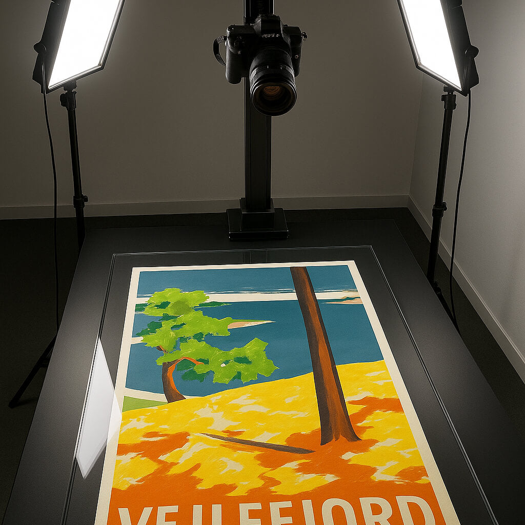 Alle værker fotograferes med et professionelt RED-kamera, kendt for sin ekstremt høje opløsning og præcise farvegengivelse, hvilket sikrer et digitalt grundmateriale i absolut topklasse og et tryk, der ligger så tæt på originalen som muligt.