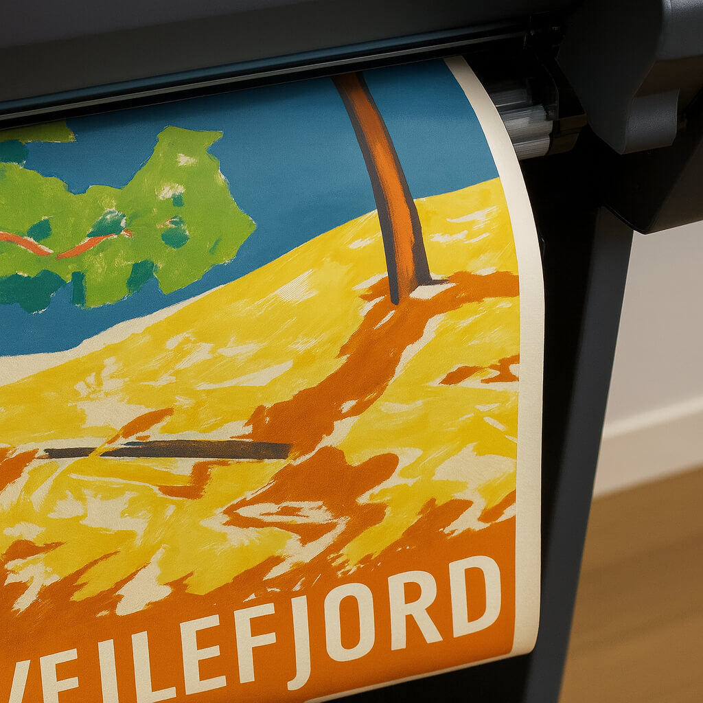 Alle vores plakater printes på bestilling, når ordren er lagt. Det giver os fuld kontrol over kvaliteten og sikrer, at hvert enkelt tryk er friskt, præcist og uden spild. Vi arbejder udelukkende med professionelt 12-farvet print, hvilket giver et markant større farverum end traditionelle 4- eller 8-farvetryk. Resultatet er mere nuancerede overgange, dybere skygger, blødere højlys og en langt mere præcis gengivelse af både farver og fine detaljer.